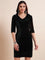 V-Neck Ruffles Detail Velvet Sheath Dress