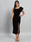 Shoulder Straps Velvet Ruffles Bodycon Midi Dress